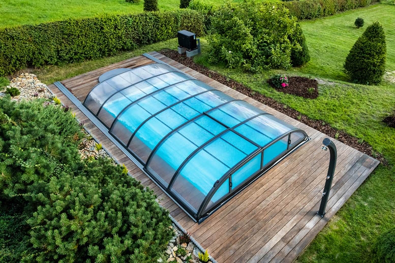 Velkou výhodou bazénu je možnost zastřešení. Nejenže chrání vodu před nečistotami a šetří náklady na údržbu, ale především prodlužuje koupací sezónu. Díky zastřešení od ALBIXON si užijete plavání od jara až do podzimu, nezávisle na rozmarech počasí.